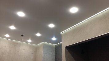 Есть ли возможность встроить точечные светильники или использовать подвесную люстру с натяжными потолками?